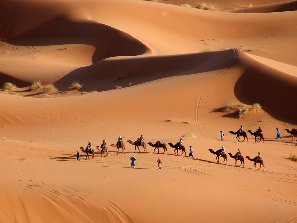 Un viaje al desierto del Sahara Marruecos es sin duda una experiencia que todo el mundo debería tener por lo menos una vez en su vida. Es un viaje bien vale la pena el esfuerzo y tendrá buenos recuerdos para durar para siempre. Imagínese encima de un camello, trekking en el desierto del Sahara. No hay nada que te rodea y todo lo que usted puede oír son las huellas del camello en la suave arena. El cielo es amplio y claro en el día y lleno de millones de estrellas brillantes en la noche. Es una experiencia muy pacífica, uno raley conocido por la mayoría del mundo occidental. El color de las dunas depende, naturalmente, de su composición química, pero el color varía también según la inclinación de la pendiente, de manera que el ángulo de incidencia de la luz solar. Erg Chebbi se extiende sobre una distancia de 28 km de norte a sur y 6,5 km al este. La belleza de estas dunas es un imán para los turistas extranjeros y marroquíes. Este último objetivo del Oasis a buscar tratamiento para ciertas enfermedades como el reumatismo.